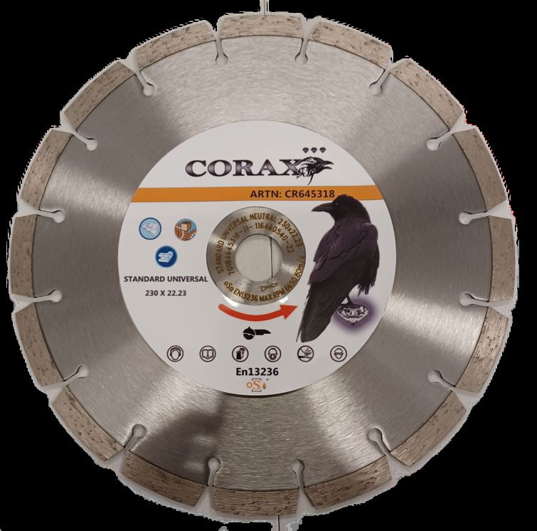 A Corax Standard Uni egy kiváló minőségű szegmentált gyémánt vágókorong, amelyet kifejezetten általános építőanyagok, például téglák, járdalapok, térkő vagy betont zsaluelemek megmunkálására terveztek. Ez a tárcsa ideális az építőipar számos alkalmazásához, és lehetővé teszi a precíz vágást különféle anyagokon. Gazdaságos kivitel, ipari célra.