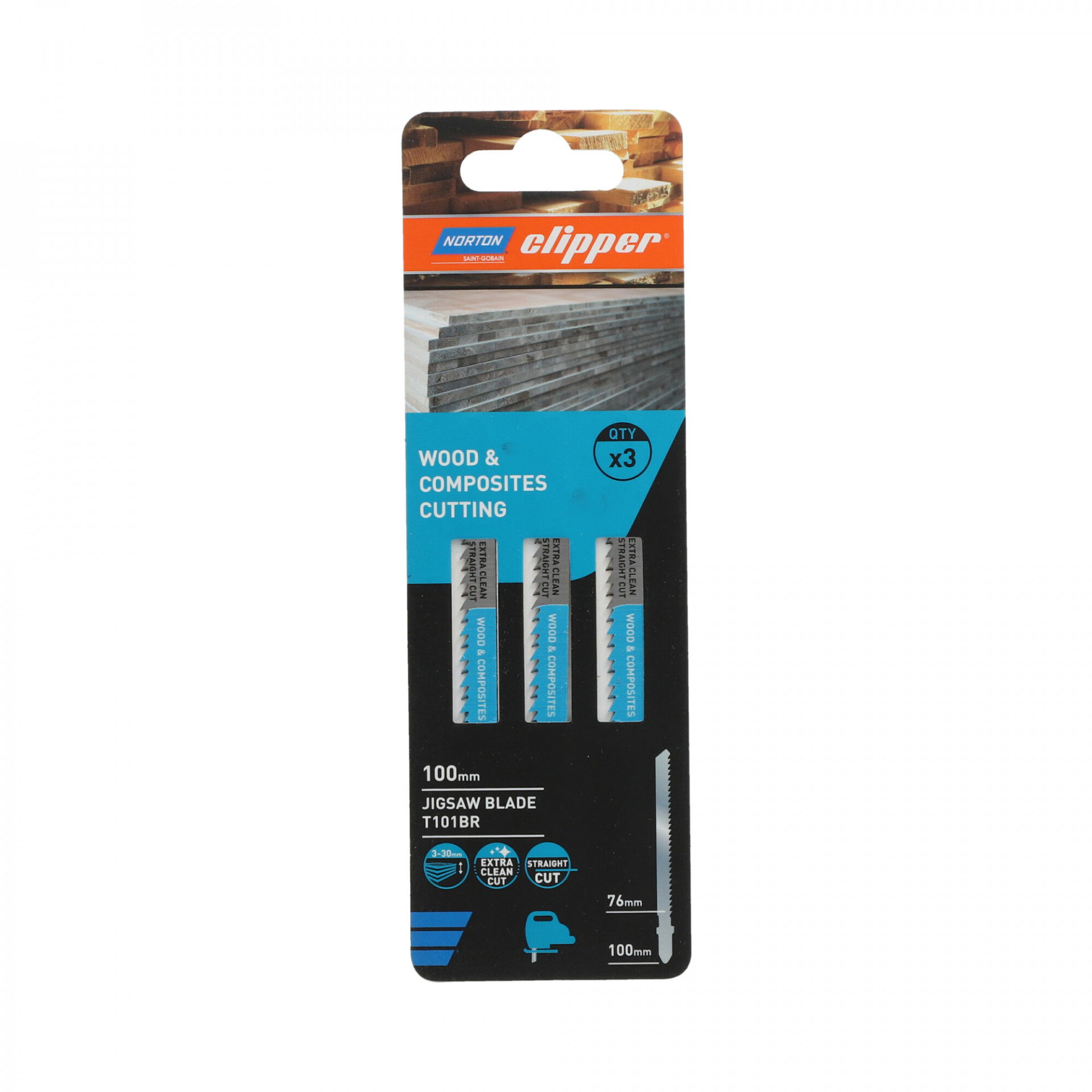 A Norton Clipper szúrófűrészlap segítségével a felhasználó gyorsan és egyszerűen vághat természetes és építőipari fát. HCS szénacélból készült, melynek köszönhetően tökéletesen vágja a puha anyagokat, vastag szerkezetű fűrészárut, puhafát (5-65 mm), forgácslapot, rétegelt lemezt, farostlemezt. A precízen élezett fogak egyenes, sorjamentes vágást biztosítanak kifogástalan eredménnyel.