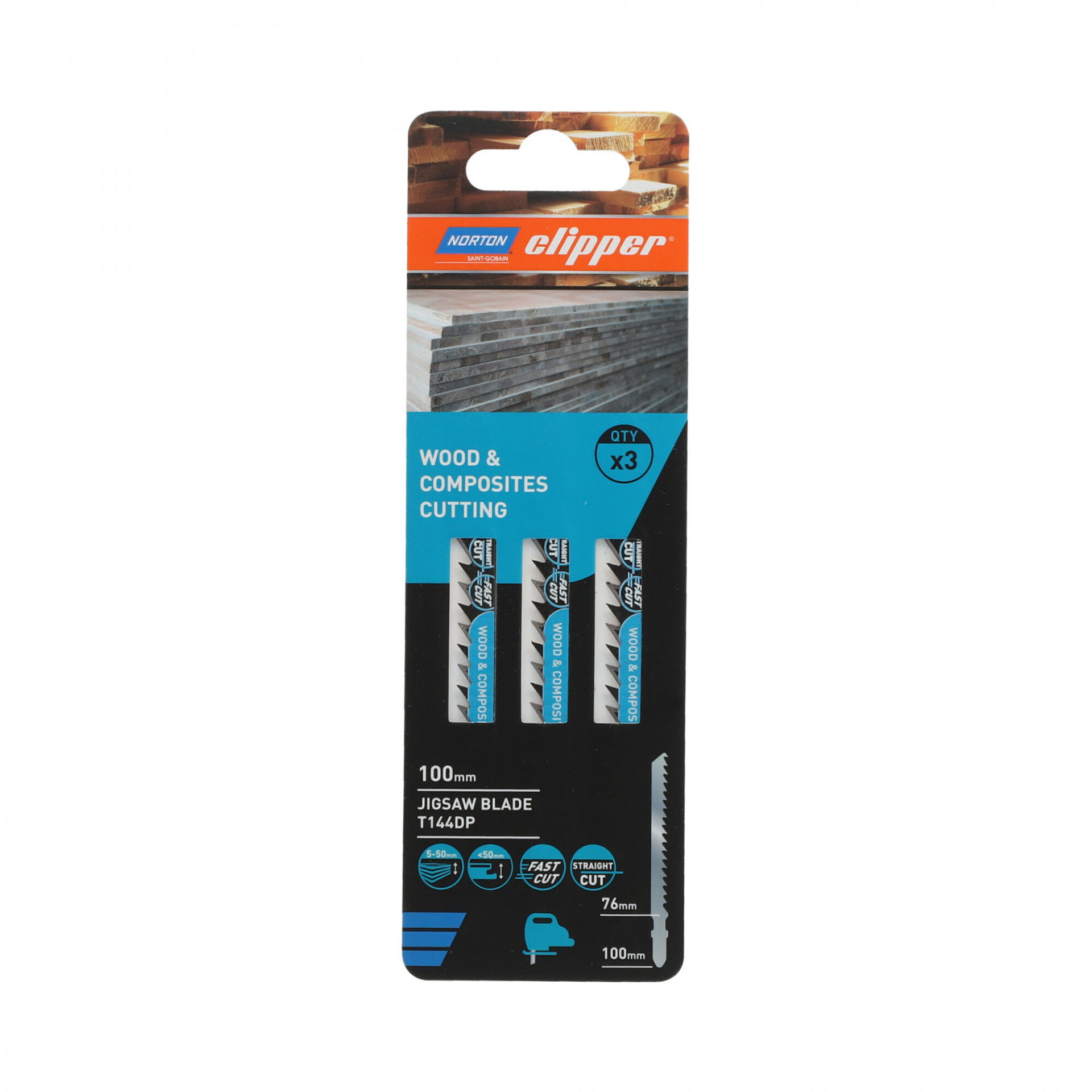 A Norton Clipper szúrófűrészlap segítségével a felhasználó gyorsan és egyszerűen vághat természetes és építőipari fát. HCS szénacélból készült, melynek köszönhetően tökéletesen vágja a puha anyagokat, vastag szerkezetű fűrészárut, puhafát (5-65 mm), forgácslapot, rétegelt lemezt, farostlemezt. A precízen élezett fogak egyenes, sorjamentes vágást biztosítanak kifogástalan eredménnyel.