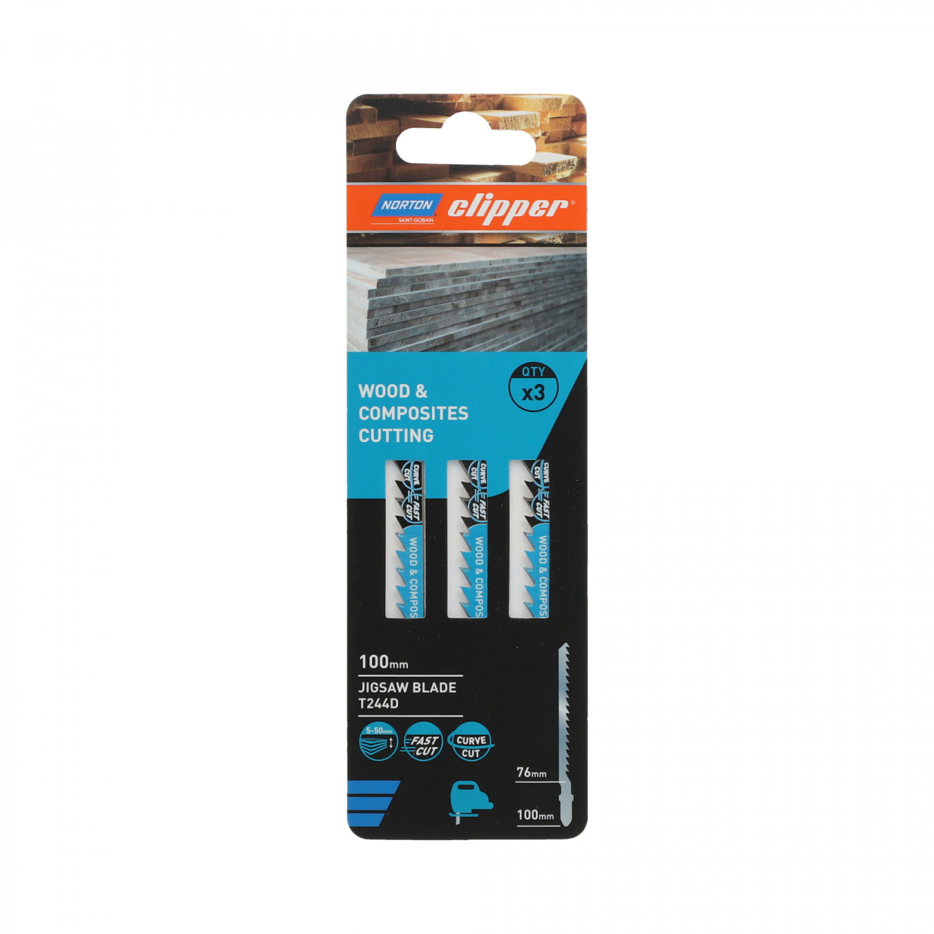 A Norton Clipper szúrófűrészlap segítségével a felhasználó gyorsan és egyszerűen vághat természetes és építőipari fát. HCS szénacélból készült, melynek köszönhetően tökéletesen vágja a puha anyagokat, vastag szerkezetű fűrészárut, puhafát (5-65 mm), forgácslapot, rétegelt lemezt, farostlemezt. A precízen élezett fogak egyenes, sorjamentes vágást biztosítanak kifogástalan eredménnyel.